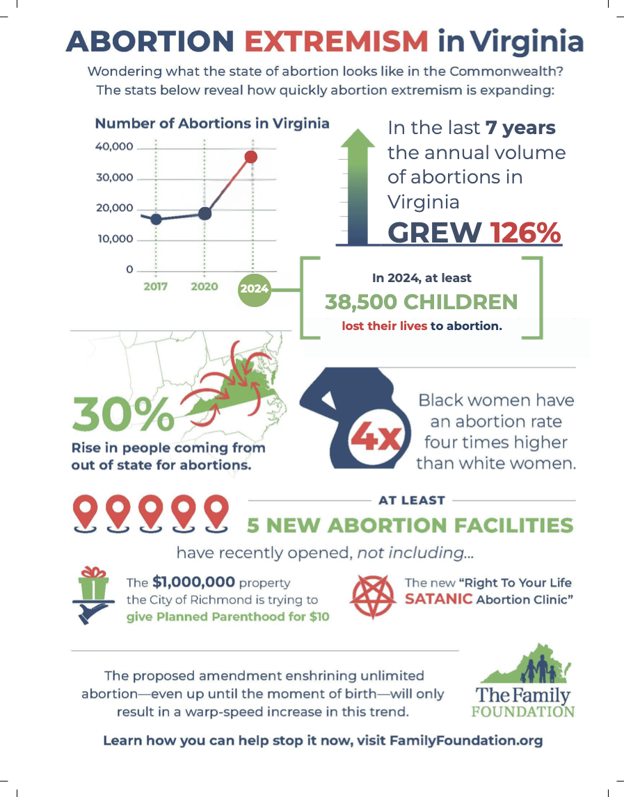 Virginia is already the most pro-abortion state in the South with virtually zero protection for preborn babies. On top of that, an Abortion Amendment is in process that would enshrine “reproductive rights” into the state constitution.