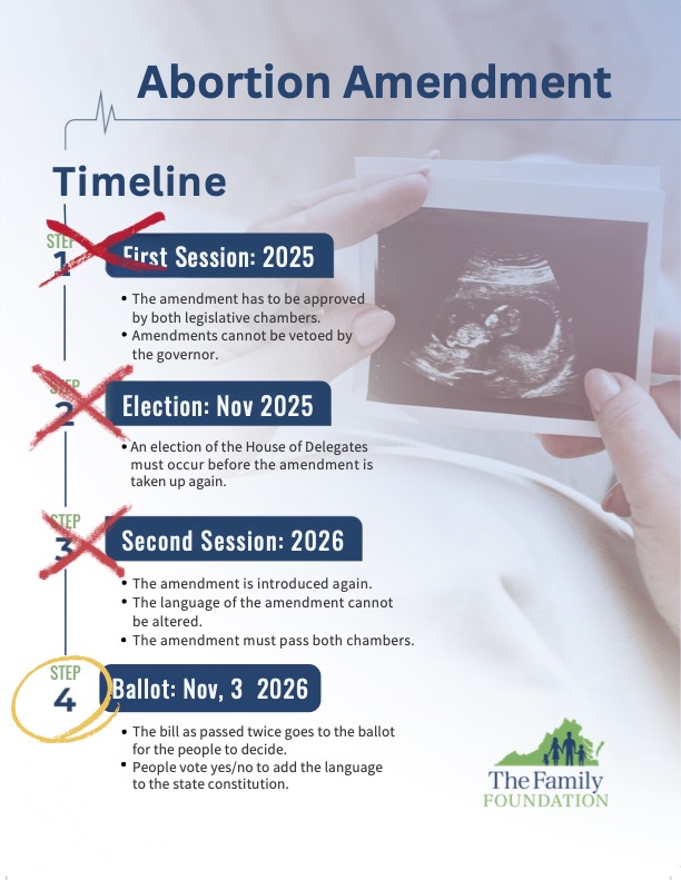 When the General Assembly (GA) began its 2026 session on January 14th. The proposed “abortion amendment” passed the House on January 14th and the Senate on January 16th. This will go to the Virginian’s voter ballet for a popular in November of 2026.